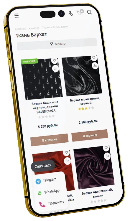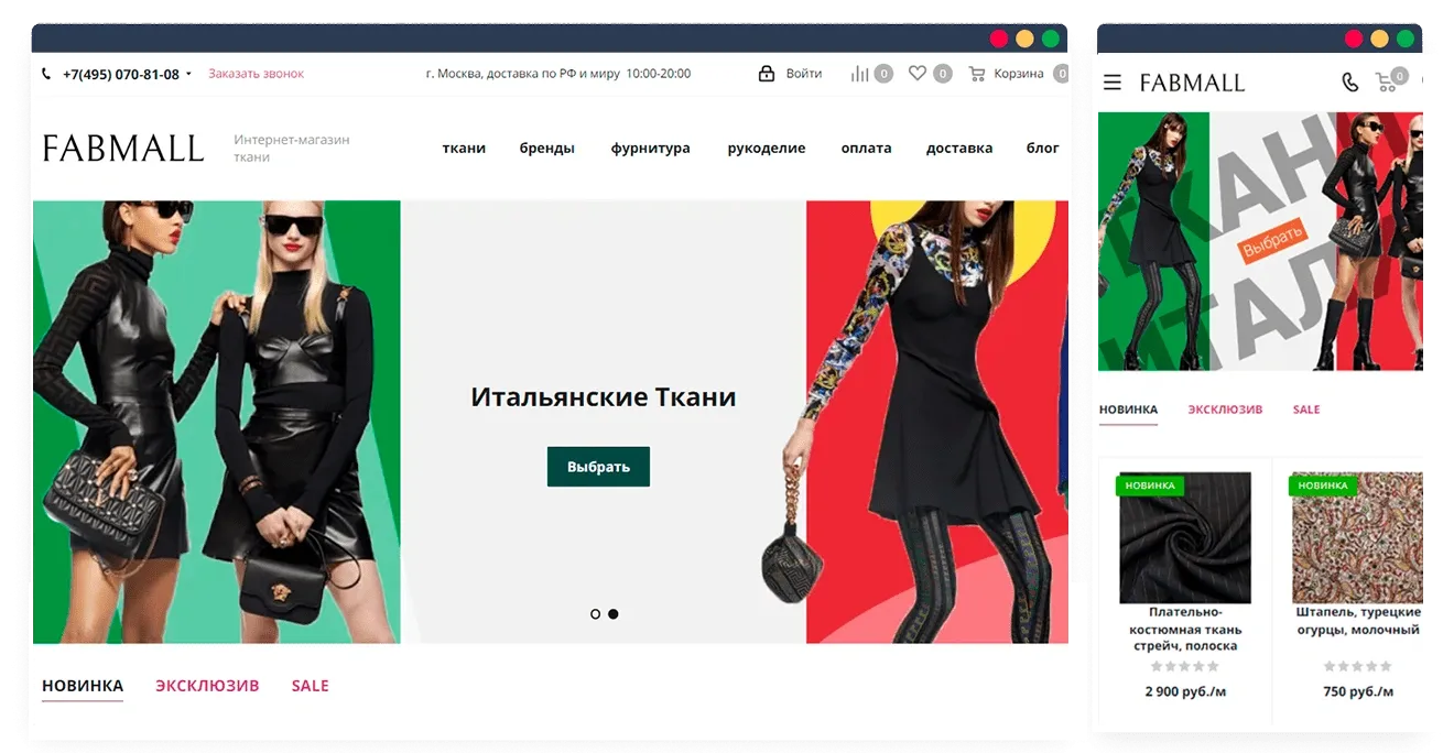 Создали интернет-магазин тканей на базе шаблона Аспро: NEXT. Это позволило снизить затраты на программирование и сократить сроки реализации проекта.