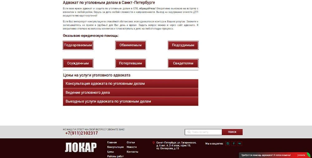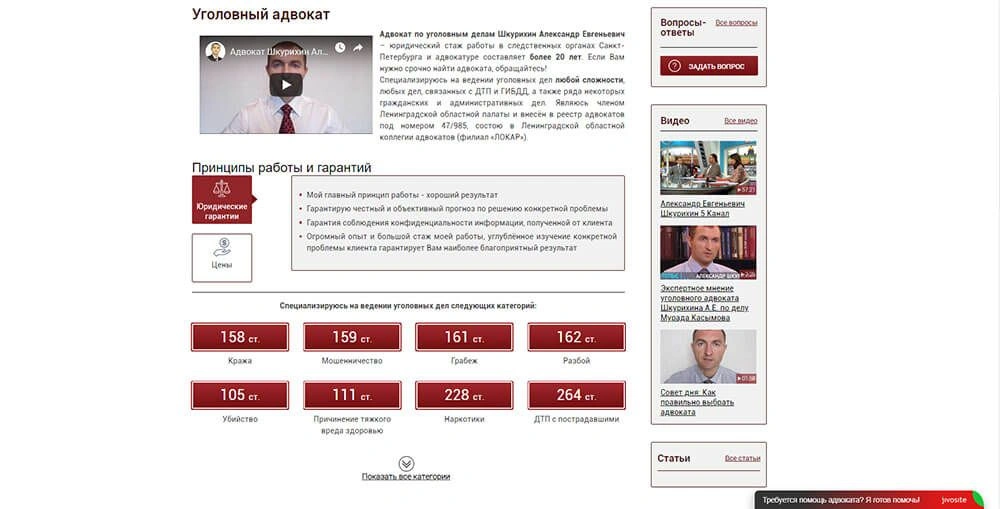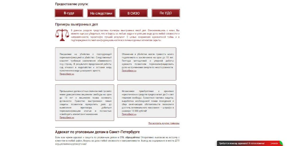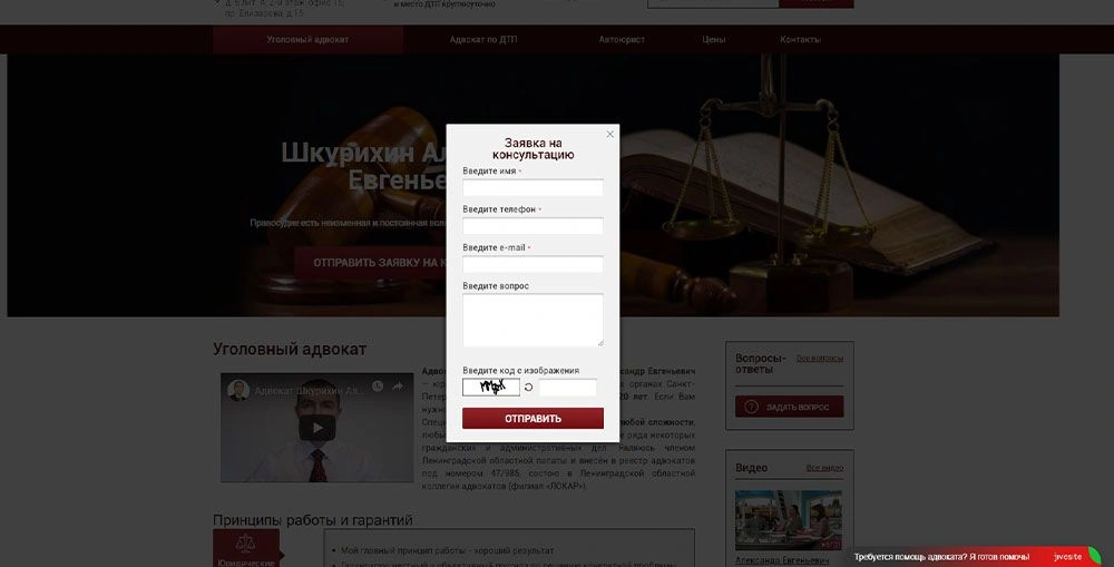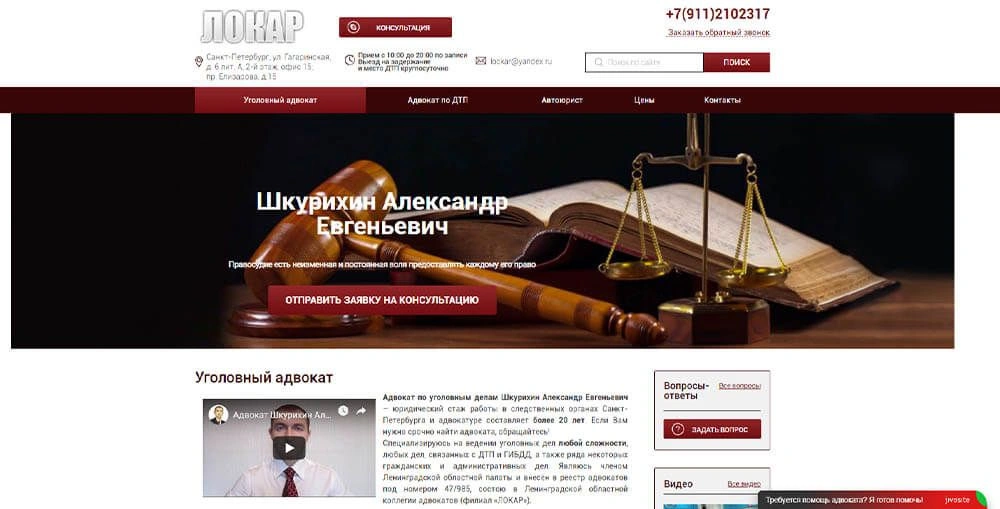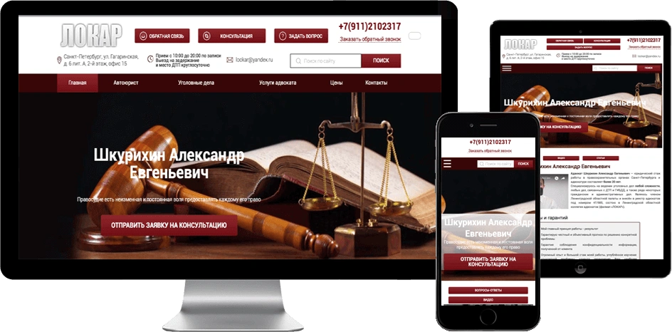 Разработали сайт для адвоката Шкурихина А. Е. Срок реализации 1 месяц. Задача стояла максимально охватить услуги уголовного адвоката, разработать понятную структуру сайта и запустить контекстную рекламу.